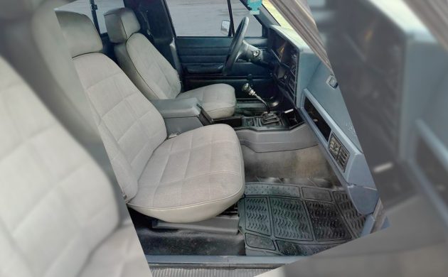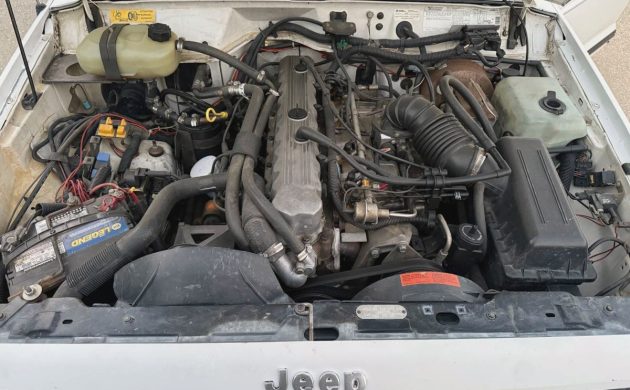 The engine (great photo, by the way!) is AMC’s 4.0-liter OHV inline-six, one of the best. It had 177 horsepower and 224 lb-ft of torque rolling through a transfer case and a 5-speed manual to all four wheels as needed. They say it works great, and it looks like a nice one, if you don’t mind having the front end a bit higher than the back end. Why is this one priced so low?