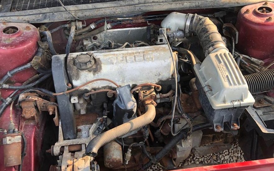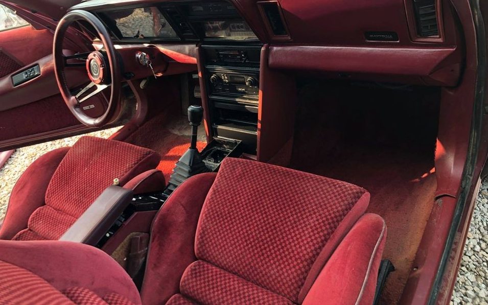 Our barn find appears to be a Turbo version which research indicates should be a 142 net HP, 2.2-liter four-cylinder “turbo” engine attached to a five-speed manual transaxle. The listing displays the engine’s displacement as 2.5 liters but that appears to be in error as that larger engine didn’t show up in the Daytona until 1986. The seller claims that the engine does turn over but does not start. Of note, there is some rodent attacked wiring, the radiator is listed as missing along with “a few other items in the engine compartment“.
