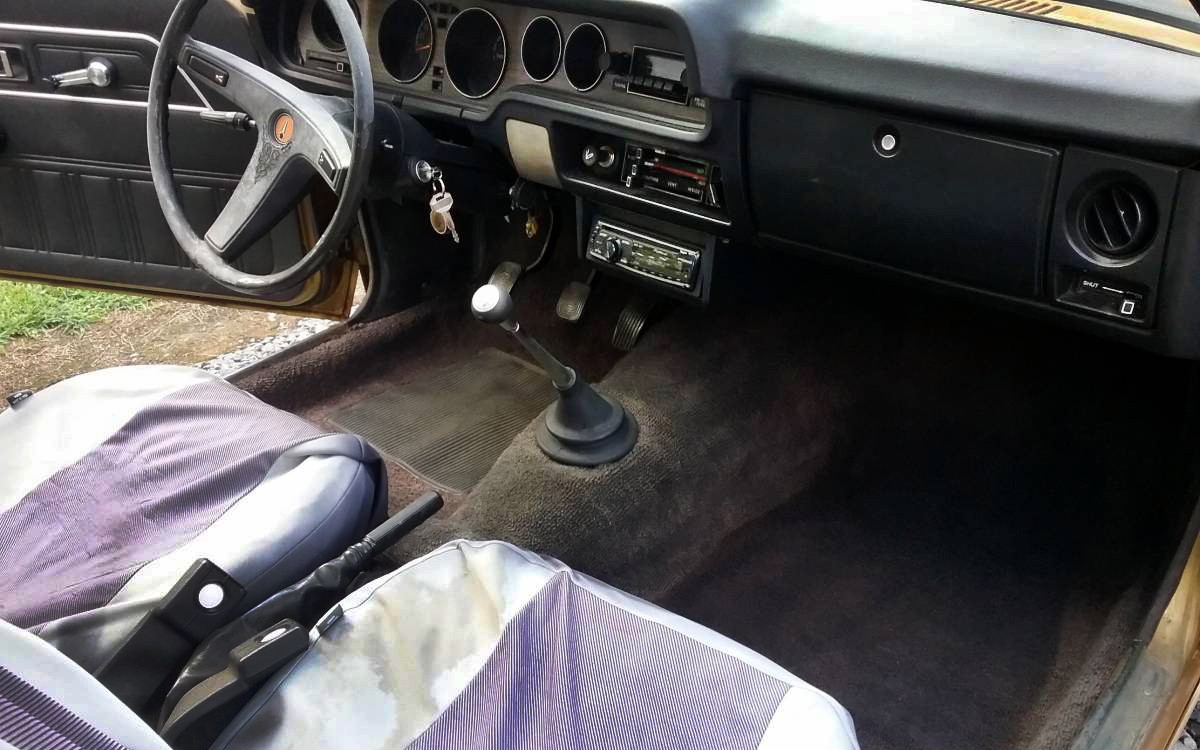 There are no photos of the passenger side but maybe that’s because it’s parked next to a sweet Plymouth Arrow GT on that side, is that the seller’s car, too? You can see the two-slat louvers on the car for sale which identifies it as a first-year Arrow compared to a later three-slat louver on the GT parked next to this car. Certain collectors look for those things and they may go for a base Arrow or a GS over a GT if it’s a first-year car. I know, the crazy things that car collectors look for, I’m the same way, I would rather have a first-year GS over a later GT.