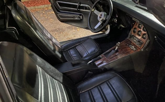 One aspect of this Corvette requiring relatively little attention is its interior. It probably won’t score the new owner many show trophies, but it shouldn’t cause any shame if they rock up to a Cars & Coffee. The Black uphostered surfaces and carpet look quite nice, as does the dash. The faux woodgrain is lifting in spots, although an attack with some glue might recify the issue without costing a fortune. The only functional issue is the non-working clock, and while it isn’t loaded with factory options, it does appear to score power windows, a tilt/telescopic wheel, and cruise control.