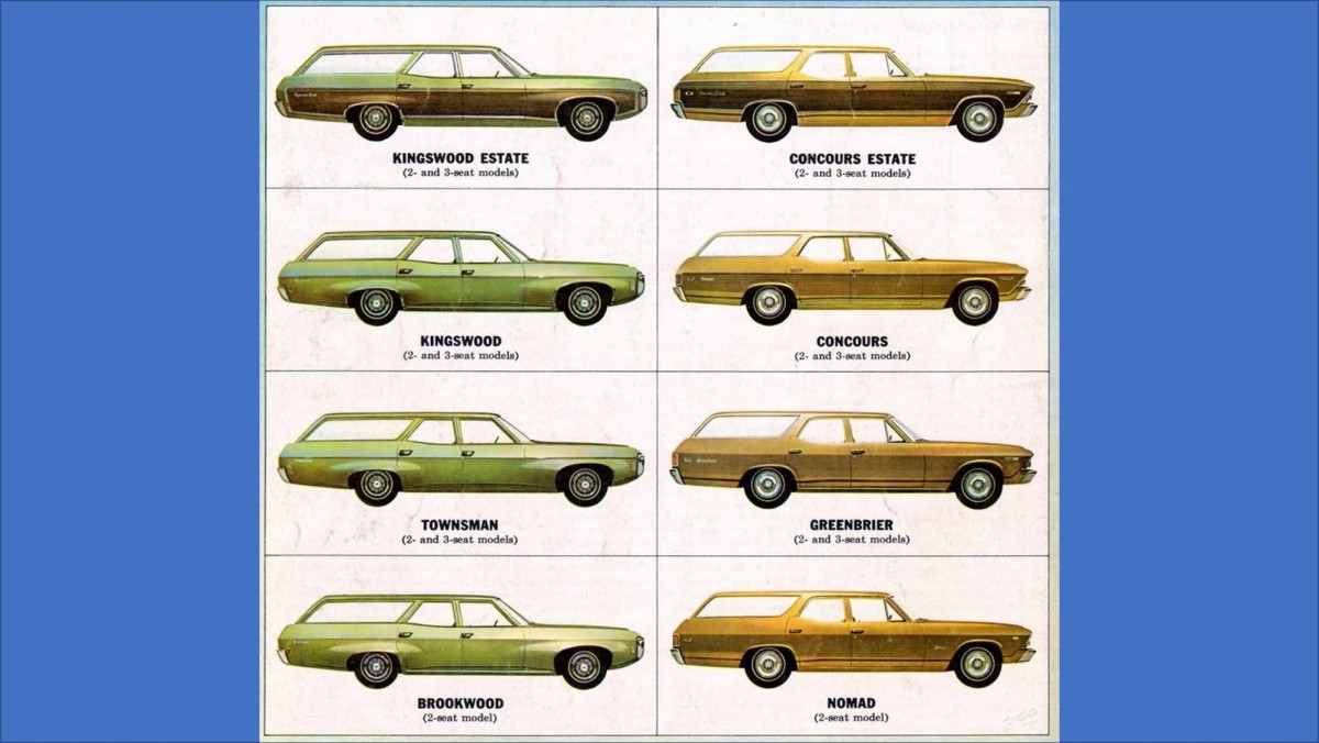 Chevrolet produced 8 different wagons in 1969, of which four were off of the larger full-size platform shown on the left. This Kingswood represents the second-best level of trim in the lineup, with only the Estate and its Dy-noc fake wood more luxurious. Unfortunately, I couldn’t find a production number breakout to see how many wagons were produced, as the production figures for the Kingswood were combined with the Impala line and totalled 777,000 of the 1,168,300 full-size Chevrolets produced in 1969.