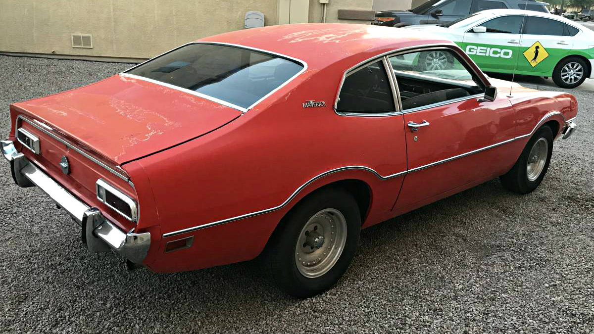 Being an Arizona car is a bonus as this Ford appears rock solid with no signs of rust. The paint appears to be original having held on well for 44 years although the clear is starting to fail and chip off on the roof and trunk lid area. Beyond the paint issues, the body looks excellent and very clean. The body trim is virtually perfect, and the bumpers are in nice condition as well. The only issue to point out on the body is a small ding in the driver quarter, where the paint chipped and a small area of surface rust has formed. As far back as the dent is, I would think it could be accessed from the trunk, and possibly be pushed out, or worked on, as the quarter panel is not creased. Clean with a great potential to be a fun and affordable project, this Maverick seems like a no brainer. Would you pick up this clean affordable classic?