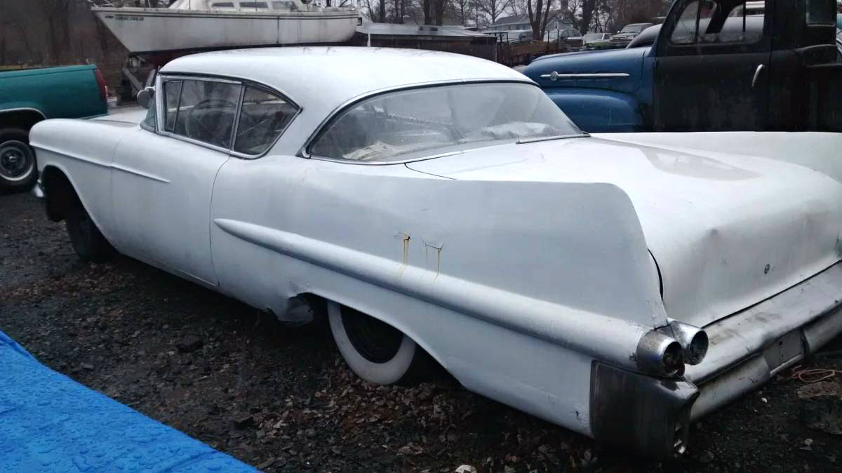 Not even really a parts car. I don’t think that their is one straight panel on this car. Not to mention the face lift someone gave those fins. Make it a road worthy rat rod. Too much rust and way too much bondo.
