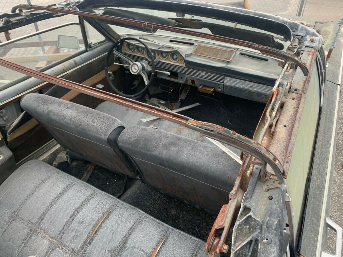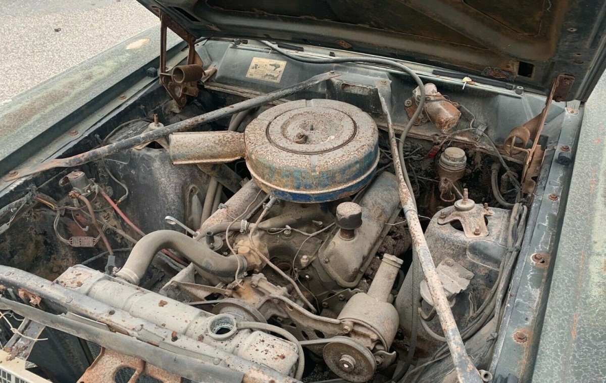 The distributor is missing so the engine insides have been open to the elements. Besides PS it has no power anything. Every exterior panel has cancer. The interior is complete trash. The rear is missing the trim, lights and bumper. The best thing about this car is the pair of sneakers on the back seat! Between the mechanical, body and cosmetic issues it’s not worth the money to haul it away.