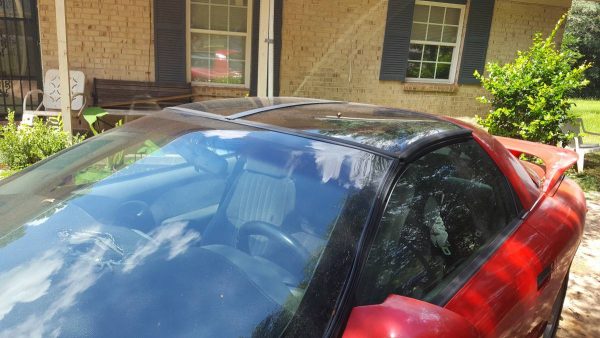 In the picture above, we see the legendary Trans Am T-tops. Along with a mullet and a sleeveless T-shirt from the nearest den of ill repute, T-tops should have been standard equipment on every Trans Am produced. The ones pictured seem to be in good shape, with no cracks or chips evident. Of course, there has never been a car with T-tops built that didn’t leak, so a thorough inspection of the floors for rust should be performed before purchase. Another good sight is the dash cover with a hole crudely chopped in it. Once again, the interiors of these cars are designed like there was a contest to see which engineer could get the most plastic in the cockpit design. I hope the winner got his week at the Greenbrier Resort, because he certainly outdid himself.