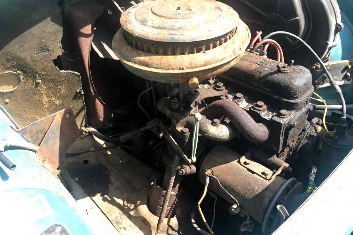 The small 845cc engine unfortunately is locked up from its many years of slumber. At this point it seems worthwhile to try some penetrating oil to see if the engine could be salvaged. Having slept for all that time, it is easy to think that the rest of the mechanical systems need some looking over, and refreshing as well.