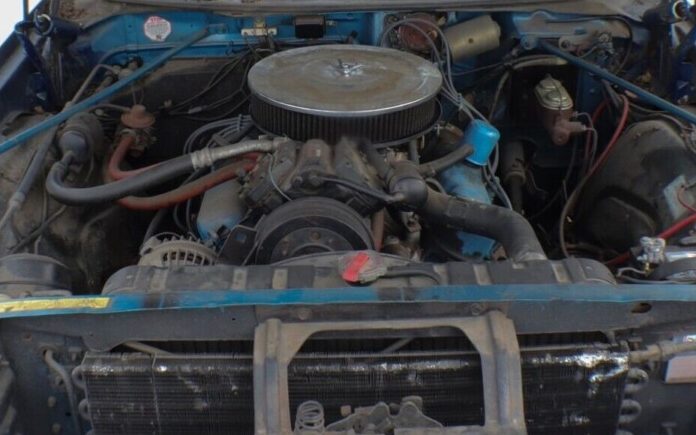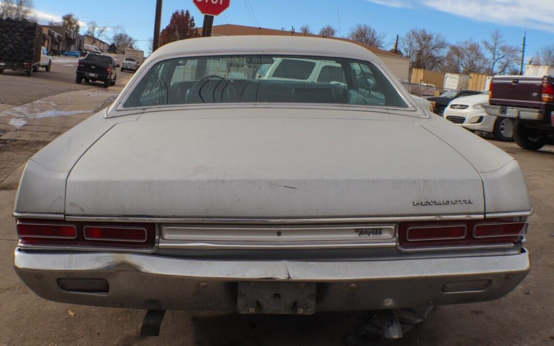 The seller tells us that this very faded Fury has a solid body, minimal rust, and no water damage. I thought it was faded silver but after viewing the open trunk and engine compartment, I’m thinking that it is gray primer. The C-pillar trim indicates that there was either a two-tone finish applied or perhaps a vinyl top covering in place at one time. And if that’s the case, this car may be better off without it knowing what a rust magnet it can be. There is no visual evidence of crash damage though the rear bumper has seen some friction and we’re told that the passenger side taillight is broken but still operates. Of note are the chrome-plated steel wheels – a popular replacement item in the ’70s.
