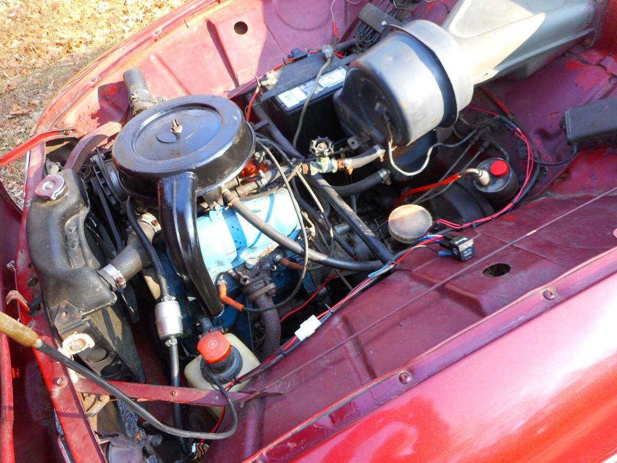 The engine is a Ford Taunus four-stroke V4 displacing 1498 cc’s with a single barrel Solex carburetor, good for about 60 bhp. The car was not quick but rowing through the column shift manual could achieve a top speed in the 90 mph zone. This car has a new electronic fuel pump and fuel lines, and the tank was cleaned out at the same time.