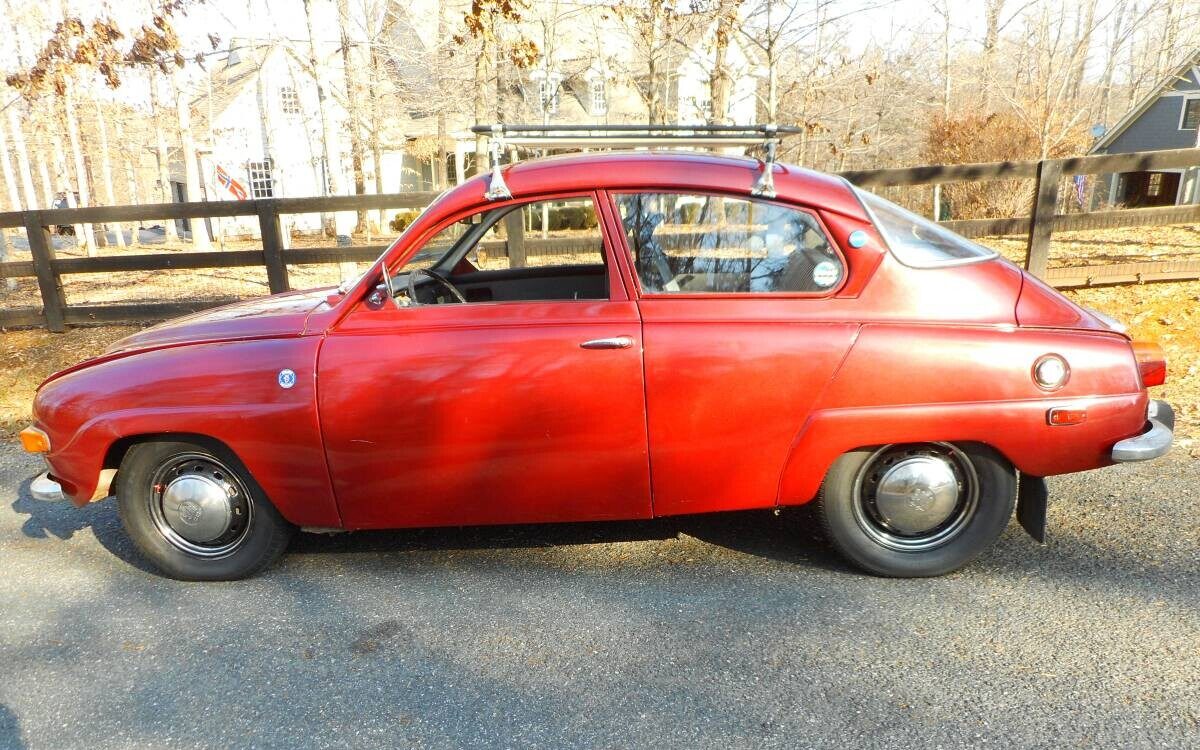This is almost a dead ringer for my Saab:1969 but I think the red color on my car was not as bright. I bought it used in about 1971, a used car at the Littleton NH Chevy dealer, formerly owned by a chicken farmer. We had to dig out the manual to figure out how to get it in reverse. The gravel roads did their worst to the front fenders, holes the sie of my fist at the top, but they bolt right off. The caution for any buyer: the transmission bearings, started to seize up on the original trans, and then on the replacement used one too. I had the Saab dealer rebuild with new bearings but it ran and drove great, much more comfortable than the Beetles of the day, and a heater almost the size of the engine was a pleasure. If a 95 were to show up I might be tempted, and there are shops close in close-by Berkeley CA, but I still have the factory service manual and the come-along to pull the drive train: 3 bolts!