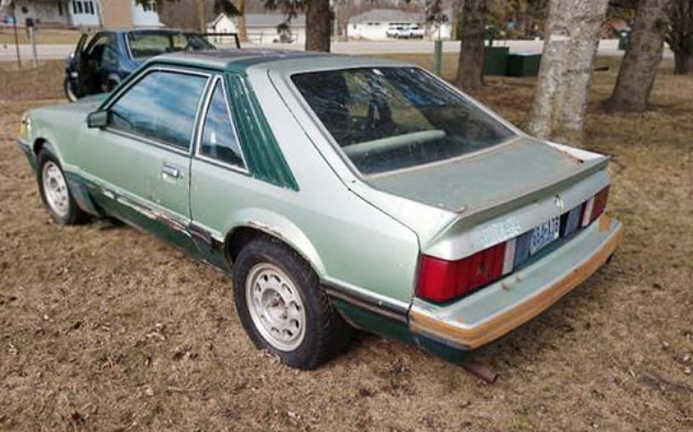 The seller of this ’79 Mustang got it in a trade from someone who had purchased it from a long-time owner’s estate after said person died. He refers to it as a barn find because it sat unused for years and probably outdoors given the photos provided. The mileage is not known, but what is known is the turbocharged I-4 that this one came with does not run. With no indication of what it would take to remedy that. The body is dented and banged up, traces of rust are here and there, and the paint is pretty tired. The interior isn’t much to look at either. The low asking price is likely attributed to there being no title to consummate the sale.