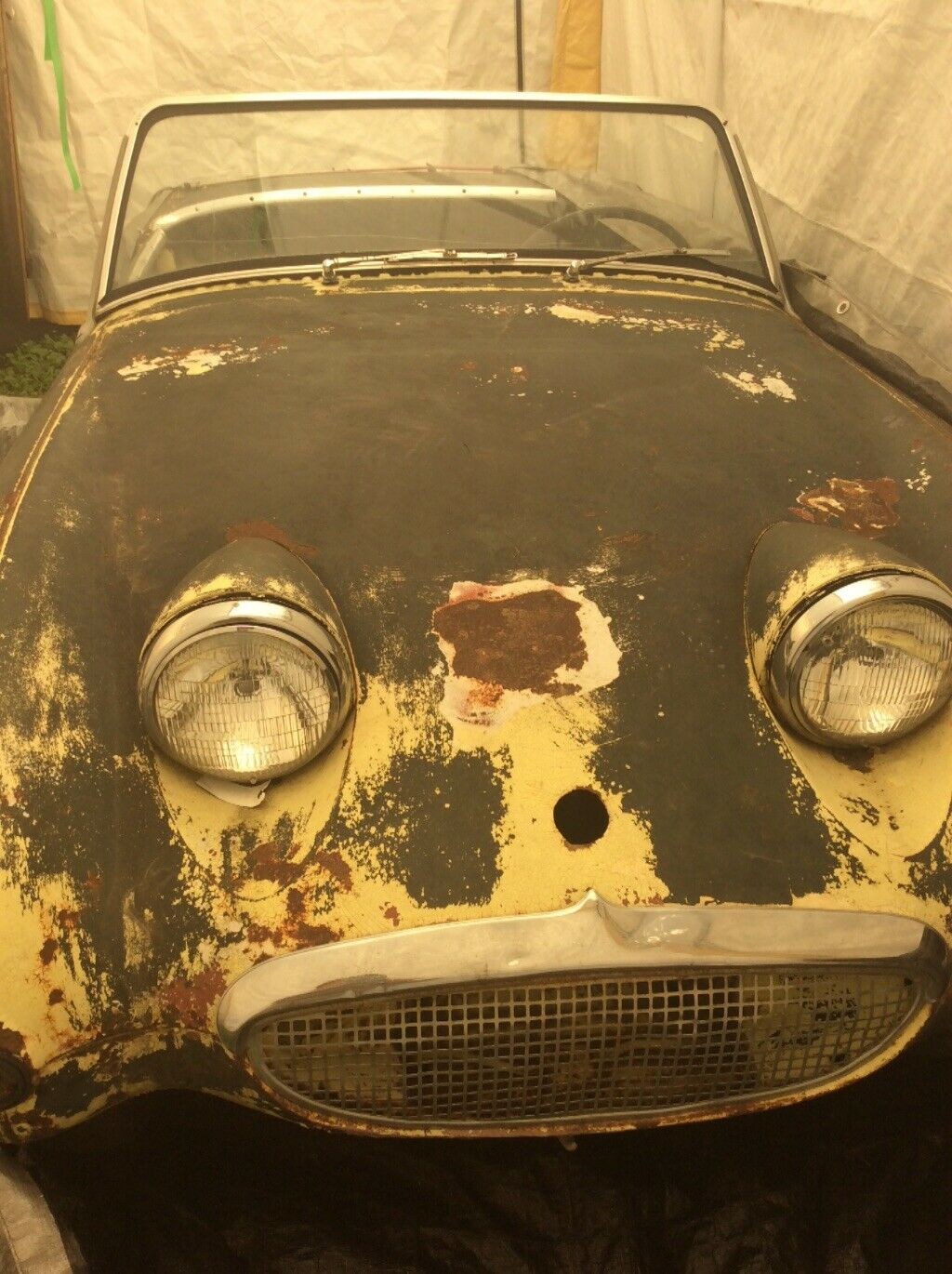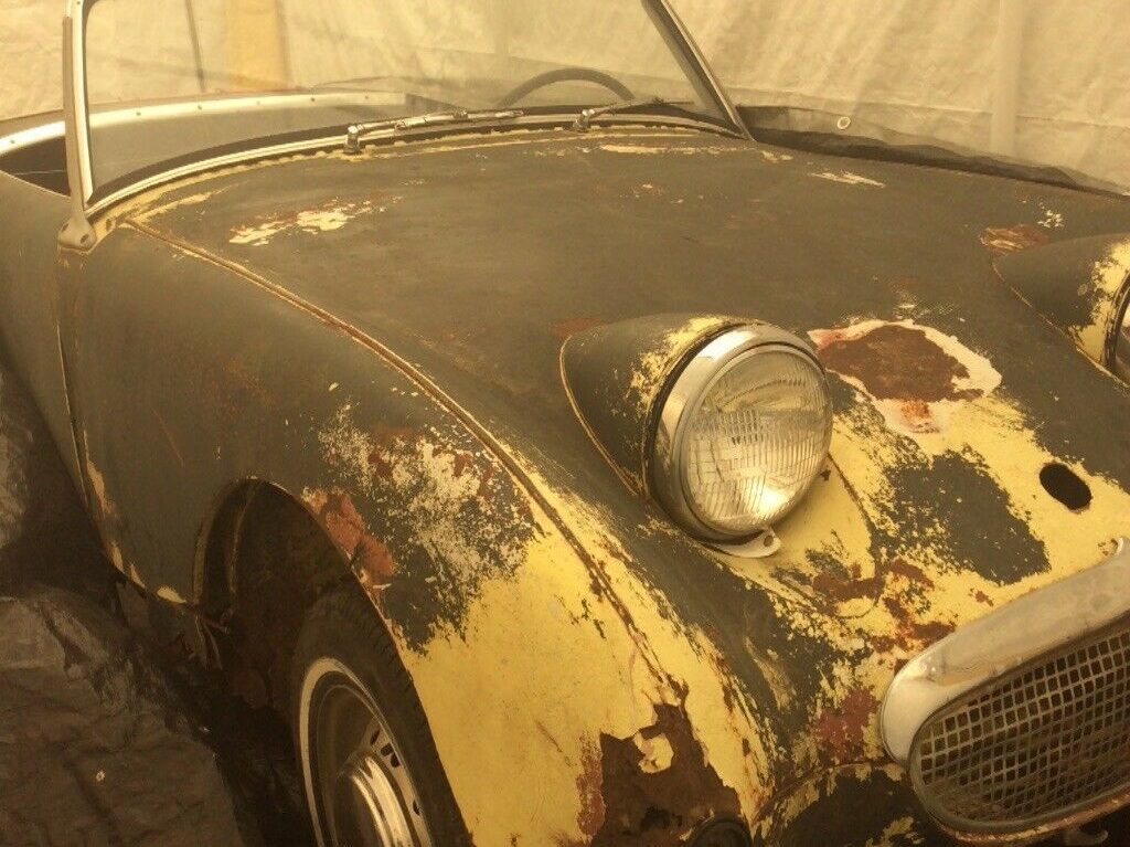 As my handle suggests, I am predisposed to love this car and also to buy it. But it is no longer in the $500 range which is preposterous! Looking at the “floors” tells me the fore-aft reinforcements for the quarter elliptic springs are LONG GONE. No shots of the back of the car which is one big piece of body work without a trunk lid to break it up. Even the bonnet will need a lot of metal work. If this remains in the hundreds of dollars, perhaps the bonnet could be made right and donated to a later Spridget to create a Bug Eye clone. Bolt on, with a little fabrication, for any Sprite or Midget right up to 1979 model year.