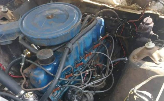 This wagon is equipped with Ford’s 200 cu. in. Thriftpower six cylinder paired with an automatic. The seller has been gradually making improvements, so in the last five years, the battery, alternator, starter, fuse box, heater core, radiator, rear brakes, axle seals and wheel bearings, shocks, and front coil springs have all been replaced. The car has a new gas tank, fuel pump, and sending unit. The seller installed a B&M shift kit and Pertronix electronic ignition. Problems of note include a cracked exhaust header, but a Hooker header is included in the sale. The Falcon aged out by 1971, when the Torino took its crown.