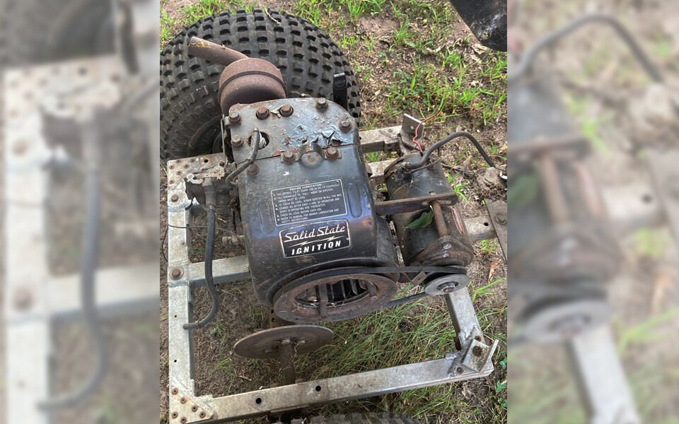 That’s a “cast iron” Tecumseh, hp unknown, but the “solid state” was a buzz word for technology, but nothing more than a gimmick, and still a troublesome points/magneto, and parts are hard to find. While I’ve had both, Tecumseh always had more power than a B&S, but finicky, and poor cams, I think, made the Briggs a better choice. Did you know, Briggs uses plastic camshafts, with good results. IDK, gimme old fashioned metal anyday. No pull start, indicates electric start/charge, like a golf cart, and I’d ditch the whole mess for a snowmobile twin, and I bet still a lot of fun. I’m sure many today look at this as an injury waiting to happen with no safety equipment of any kind. Hey, guess what, your common sense was your safety equipment.