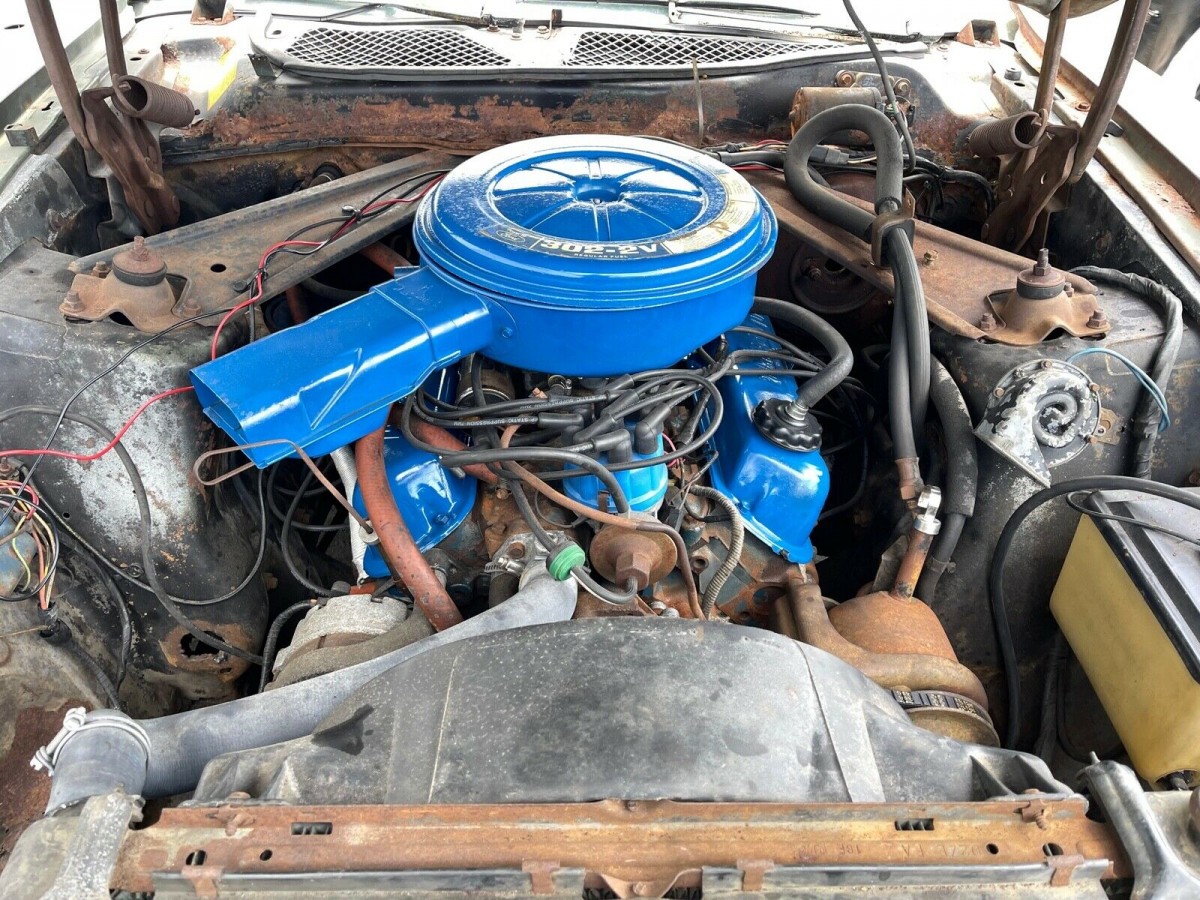 The original owner ordered this classic equipped with a 302ci V8, a three-speed automatic transmission, power steering, and power brakes. This V8 would have produced 135hp, allowing the car to cover the ΒΌ mile in 18.2 seconds. Potential buyers should not consider this vehicle roadworthy because the brakes don’t function. However, the motor runs, which is confirmed by this YouTube video. It sounds rough and would benefit from a tune-up and a new exhaust, but it shows potential. Once again, scanning the parts collection reveals new shocks, a new water pump, a fuel tank, and many other seals and items to help this classic return to our roads.