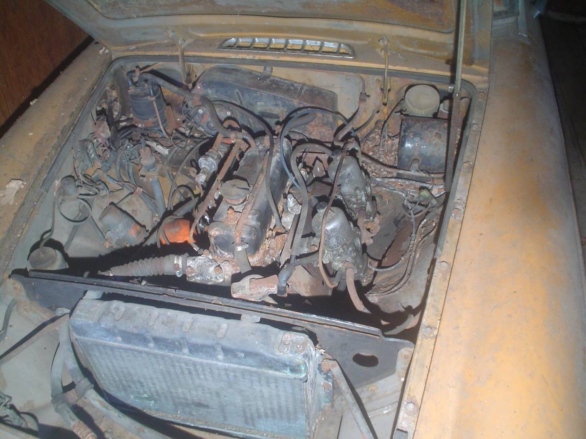 Here’s a knife in the gut, properly turned, gives me the feeling I have now. My ’71 was this color originally. Put a quarter million miles on that car,( before it broke in half) so don’t anyone say they are inferior. In all those miles, that car only stranded me once. It was in a blinding snowstorm, when the motor quit, I opened the hood, and it was PACKED with snow. Dried the cap and wires and I was on my way. Oh sure, a tail light blinked on and off or a signal stopped working, but that was because the fusebox was under the hood, ripe for corrosion. I don’t recall that cars electrics any better or worse than any other car. This car is a treasure trove of parts, but I wouldn’t waste a nickel on trying to restore it. I never liked what they did to the dash on these anyway. I get a kick out of the hood dings. Before the rubber bumpers, anyone with a small sports car learned, not to park too close to the car in front of you.