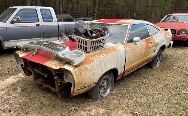 There comes a time with some classics where an owner has to step back and assess whether it is a viable project candidate. That is the question facing the winning bidder when they tow away this 1977 Ford Mustang II Cobra II. And tow it home they will, because the seller is offering this stalled father/son project with No Reserve. They have listed the Cobra II here on eBay in El Dorado, Arkansas. Three bids have pushed the price to $105.50, making it potentially one of the cheapest classics we have seen at Barn Finds.