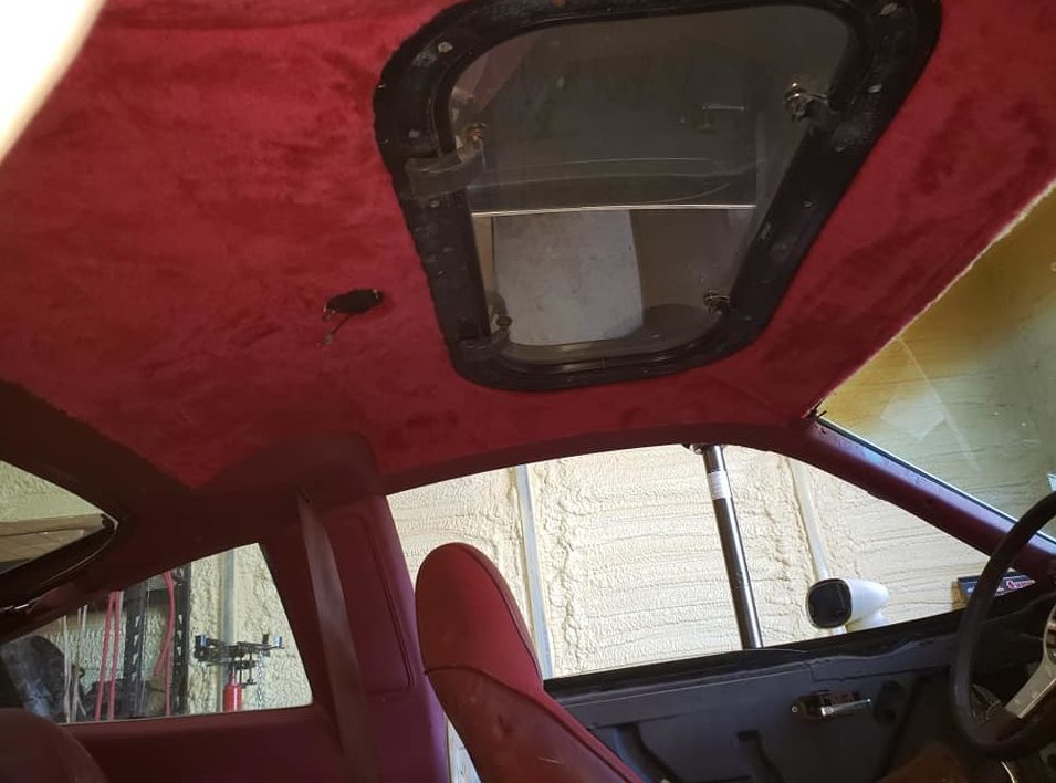 The interior, what can be seen of it, is a throw-back with its lift-up, glass sun-roof. These were all the rage in the early ’80s and were both factory-installed options as well as popular after-market, add ons. While the OEM versions, can’t tell if that’s the case with this Chevy as it was an option on the Monza, sealed well, the aftermarket versions were a frequent source of leaks and succeeding contentiousness. This is the only included image of the interior so it’s hard to tell what kind of shape it’s in, but whatever the case, it’s red like so many GM interiors of this era. Based on the following picture, the interior appears to be pretty well dismantled.