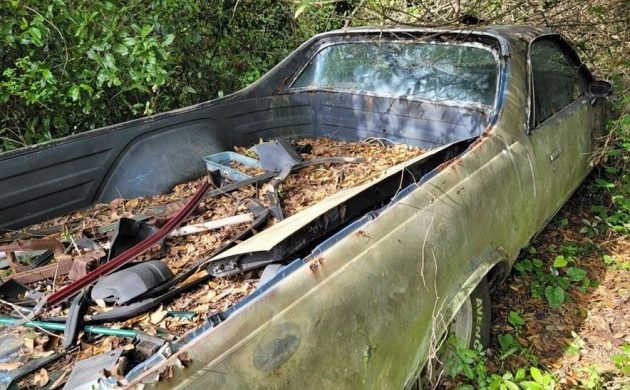 Some work has already been done or was about to be done on this car. It has a new gas tank installed and new interior components still in the box, although their condition is unknown after being subject to barn critters. The seller doesn’t know if the car rolls, but it still has its engine. With both a title and a key, the current bid is $2500.
