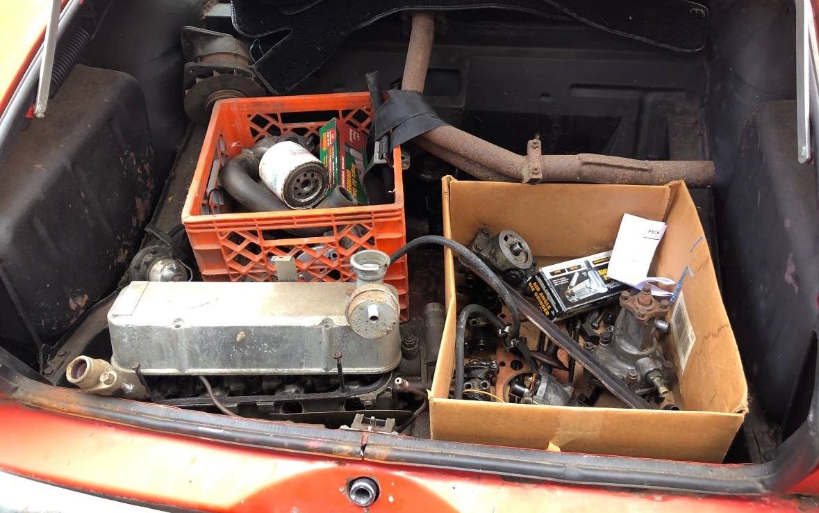 The best for last, of course, is the engine. It’s in three places, under the hood, in the trunk and in what appears to be a garage. Research tells us that it is a 93 HP, 1.7 liter, in-line, four-cylinder motor fed by twin carburetors. The seller states, “Engine is apart but have all parts” Hopefully that’s not famous last words and the new owner won’t have to conduct an Easter egg style hunt to track down some small, obscure parts. The transmission, which the seller states as being “good”, is a four-speed manual unit.