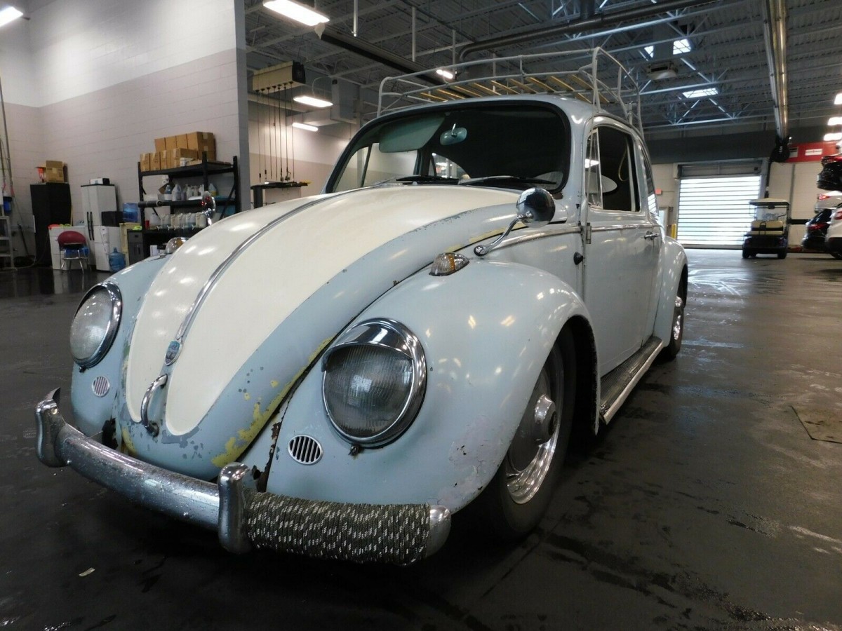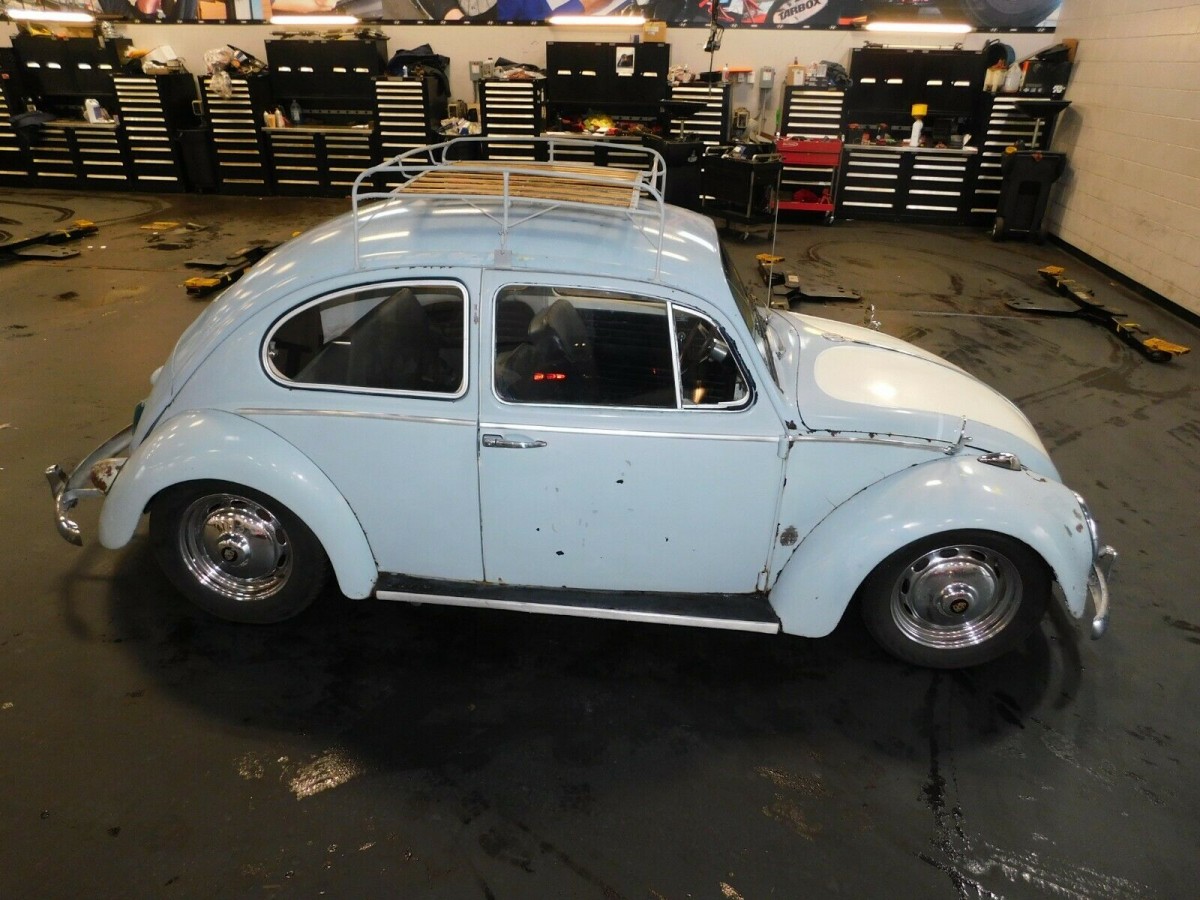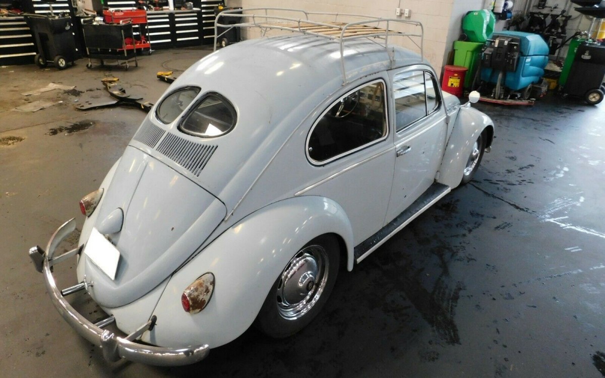 On the one hand, you have a Beetle with immense eyeball appeal. The manageable patina, as I like to call it, means you can leave as-is and have a car you can still proudly drive, or a foundation upon which to restore without losing your shirt. The details are what get people hungry for a Beetle in their garage, like the lowered stance, period roof rack, and wide Porsche 356 wheels.