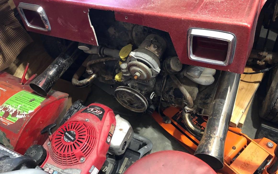 When I first spied the engine, I thought it was Honda-powered until I realized I was looking at the seller’s lawn-mower motor and not the dune buggy engine. Anyway, it’s a 1600 CC VW, flat-four, based on the alpha code, and when running, it develops 46 HP. Well, it’s not running, it is not seized but does not start. The seller adds that the carburetor and distributor have been rebuilt and he has some minor spare parts but no word on what’s really wrong with the engine. It would appear that the alternator (generator?) pulley is missing and I can’t say what inspired the Sawzall cut-out in the rear above the engine.
