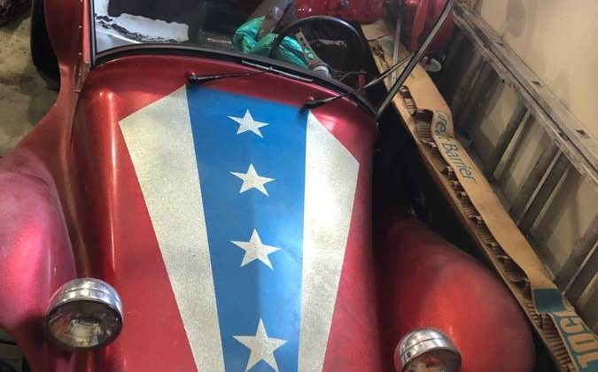This is a Kellison dune buggy built in Lincoln California. I believe it was called the Tiny T. They built a few different models as well as a actual kit sports car. That got closed down due to government issues. Pretty neat little buggy and I love the flag motif.
