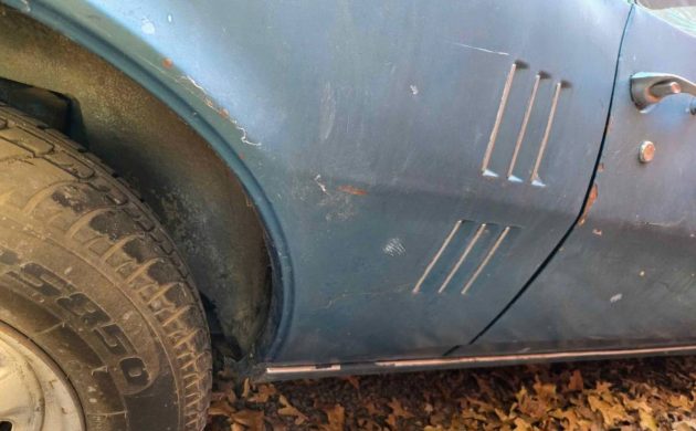 The floors and trunk are said to be solid, but they look more rusty than clean. You just wonder how much poking with a screwdriver it would take to punch through and thus demand more than a bead-blast clean up. Added to this is the fact that the body has rust issues and possible old repair. In addition, this is a convertible that’s been stored outside, so judge for yourself how much damage the tin worm has likely done. Think about what the faded and likely non-original paint is hiding, too.