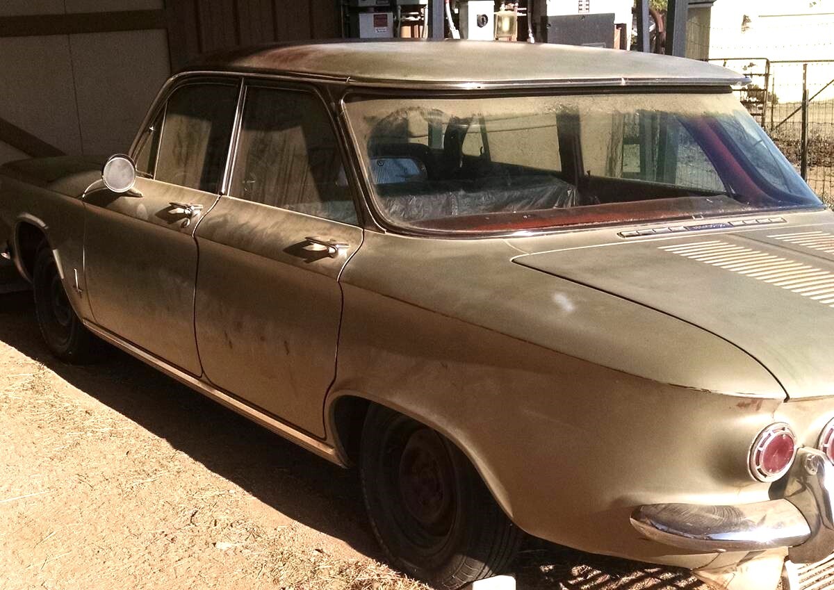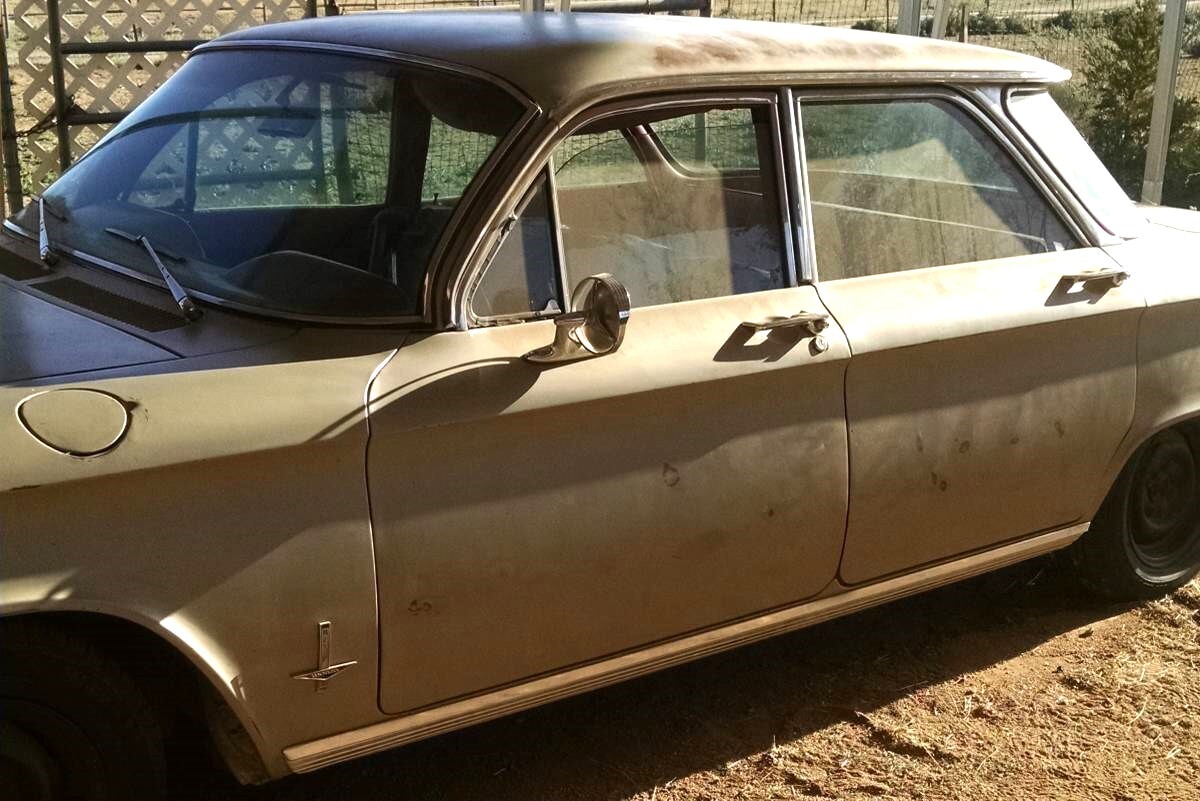By 1962, just about every major U.S. automaker had a compact car to sell. Chevrolet was the most prolific with not one but two for buyers to choose from. The first was the Corvair which was different than the others with its rear-mounted, air-cooled engine. This Monza 4-door sedan from 1962 looks like a mostly solid car that’s been in storage for quite a while. Located in Dewey, Arizona, the Chevy has been priced to sell at just $1,600 here on craigslist, so it qualifies as “cheap wheels”. Another nifty tip from Barn Finder Pat L.!