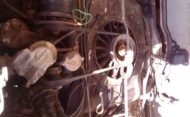 The body looks pretty fair for being 61 years old although the seller admits you’ll find some rust, but very little. The grey paint is flaking off in places (a possible older repaint?), but a good cleaning should make it look presentable enough. We can’t tell about the interior as the photos don’t help much and plastic covers appear to be over both the front and rear seats to protect them from the Arizona sun. Except for a missing air filter cover, we’re told this is a complete vehicle to restore or use for parts (only if you must).