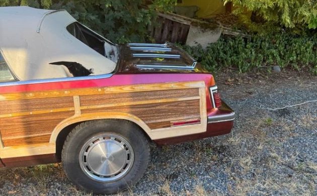 This vehicle may have been in storage since 2005 with 80,000 miles to its credit. The motor might have crapped out at that time, though the seller hasn’t said. The body, faux wood, and the Mark Cross upholstery all look okay in the less-than-ideal photos provided. The canvas top has holes in it, and we hope that hasn’t led to weather-related damage inside.