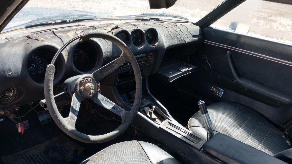 The interior is a mixed bag, with the dash completely destroyed by the sun but the bucket seats in decent shape. These dashboards are near impossible to find without cracks of some kind, so the next owner will have to either find an expensive replacement or have this one re-covered in leather or high-grade vinyl. The car does turn over and crank, but will not start. It’s sold without a title.