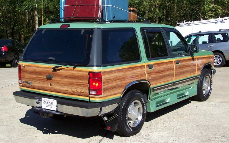 I don’t think Russ realizes that this car dealer (Cherokee) just bought this pea green explorer from an insurance salvage yard a few month back, fixed the front end damage, and then applied all of the stickers and woodgrain. The woodgrain is brand new. The only thing rare about this truck is the pea green paint that the original owner special ordered. Only 3 people i the world thought it was a nice color. So hats off to this enterprising and creative car dealer but don’t think this is some collectable package sold in 1994.