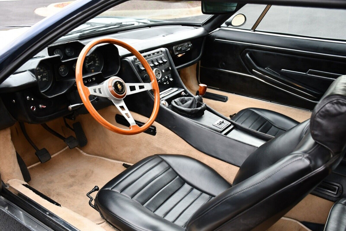 The seller identifies the transplanted motor as a fuel-injected Chevy 5.0 block of either 5.4-liter or 5.7-liter capacity. The transformation includes headers and a modern Borg Warner five-speed (replaced with a new version in 2022). The original Lamborghini differential was retained. Unfortunately, we are not given performance statistics but the seller includes a driving video; the original V12 displaced 3.9 liters and produced 325 bhp. Notably, the seller says that the car was not altered significantly during this process, which was completed in the 1980s. Not only is the underhood view very tidy, but the motor looks like it belongs there. Details like the quilted underhood insulation and the neat paint job lend credibility to the appearance.