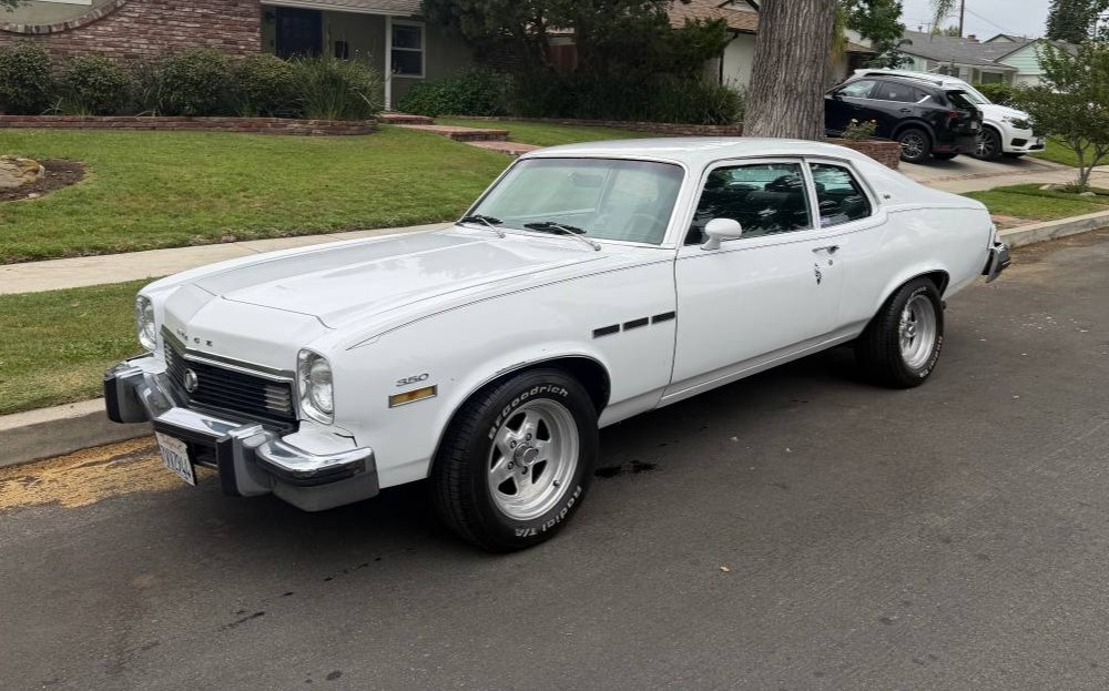 This car has Buick’s version of a 350 cubic inch V8 paired with an automatic transmission (TH-350?). The white paint looks good with just a touch of patina in some places. We’re told it’s a turnkey purchase that may only need spark plugs and other tune-up items. If you want to see the car in action, the seller can send prospective buyers a video. If you’re in the market for a nice 1973-74 Nova, don’t overlook this Buick. BTW, thanks for the cool tip, Jack M.!