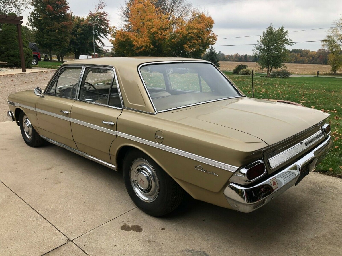 When you went shopping for the Rambler Classic in 1964, you had three choices of trim. The base one was the 550, the fanciest was the 770 and the 660 was somewhere in the middle. If you really wanted fancy, you got an Ambassador, which was on the same body as the classic, just with more goodies. Out of total AMC production in 1964, the Rambler Classic accounted for 206,000 units or 54 percent overall. They built 14,000 sedans that year of which 9,000+ had a V-8. We assume the seller’s car is one of the latter because it carries a V8 today, although not original.