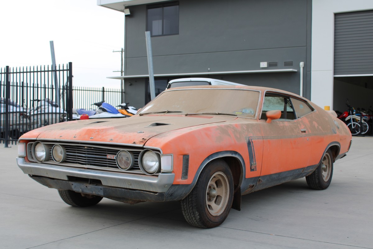 This 1973 Falcon GT started life as a dealer demonstrator in Spring Hill, Queensland. The owner purchased the vehicle from the dealership, and as a Ford enthusiast, he knew exactly what he was buying before he even walked through the door. The car is basically as it rolled off the production line, but with a few dealer-added options. The original wheels were replaced with these aftermarket items. The Black “hockey-stick” stripes were added, along with orange cloth inserts on the seats. Adding further to this car’s rarity is its color. It is known as McRobertson’s Old Gold. This was a corporate color for a chocolate bar manufacturer and was a color that only ever found its way onto the panels of three XA Falcon GT Hardtops. This is the only RPO 83 Falcon to wear that color, which makes it a genuine 1-of-1 car. The owner used the Falcon regularly until rising fuel and insurance costs forced him to park it in the chicken coop in 1988. He received numerous offers to purchase the car, but couldn’t bring himself to part with it. Fate intervened, and the owner sadly passed away in December of 2019. As a result, the Falcon is now being offered for sale to settle his estate.