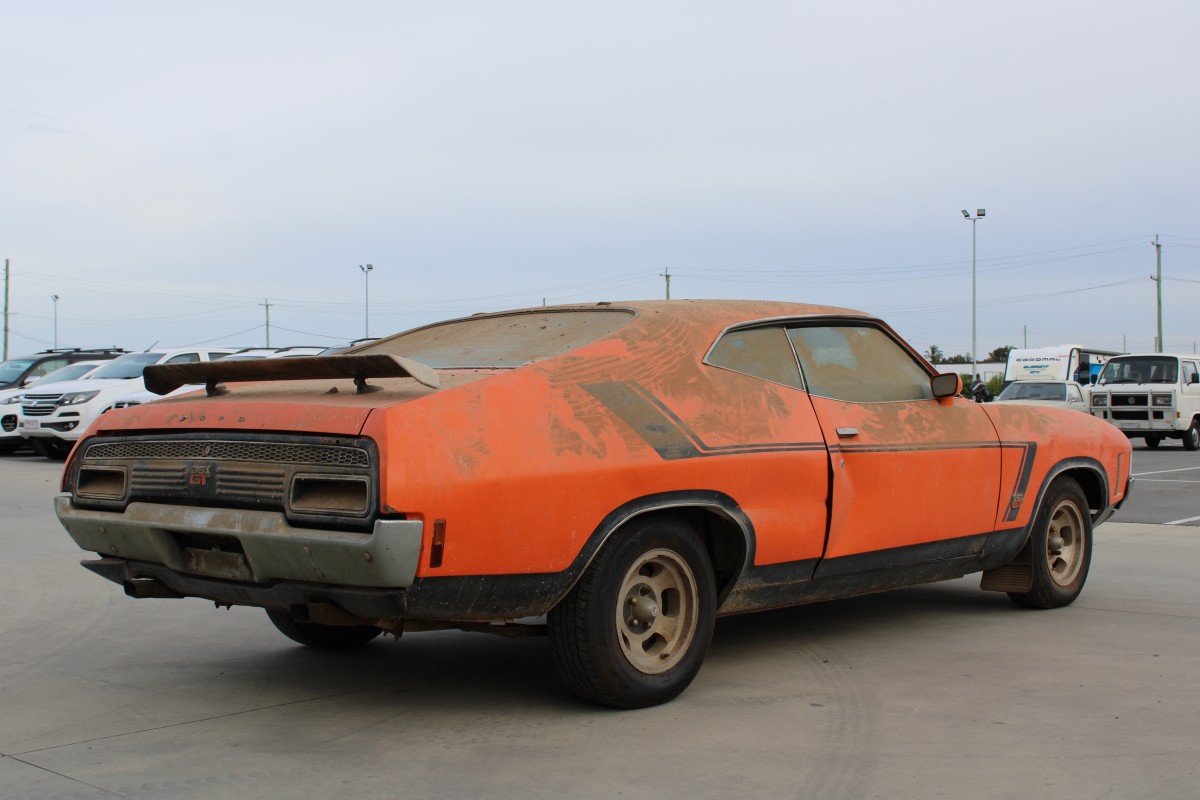 Before we delve more specifically into this car, I am sure that there are more than a few eagle-eyed readers who find the shape of the vehicle to be very familiar. This series of the Falcon Hardtop underwent two updates throughout its production run, and it was the first of these updates that you would recognize. The XB Hardtop was used as the basis for the black Interceptor in the Mad Max films. So, well spotted! These early Falcon Hardtops were known for some rust issues, and while this car does have a few, it is structurally sound. There is rust in the rockers and some of the bolt-on panels, but addressing these problems should be easy. It isn’t clear whether there is any significant rust in or below the filler panel below the rear window. This is a real rust trap in the Hardtop, but new replacements are available. Thankfully, all of the GT-specific items like badges and the grille are intact, although the driving lights are damaged. The body also has its share of dings and dents, but all of these are repairable. One of the interesting items is the rear spoiler. Australian readers will have seen plenty of these bolted to the backs of Falcons in their time, but this one is very different. The majority that we see on cars today are reproduction items made from either fiberglass or plastic. This one is a genuine Ford component and is made from aluminum.