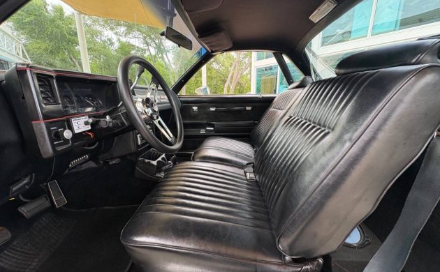 The seller’s 1985 Choo Choo is said to have just 31,000 miles. Yet the upgrades to the truck, especially the 350 cubic inch V8, are extensive and likely do away with many of the emissions controls. The motor was returned to the glory days when it produced 300 horsepower. This Chevy began as a factory El Camino SS that was shipped off to Choo Choo to do their magic. Besides the switch in front ends, the pickup also has a custom hood and dashboard with instruments that weren’t included in factory El Caminos.