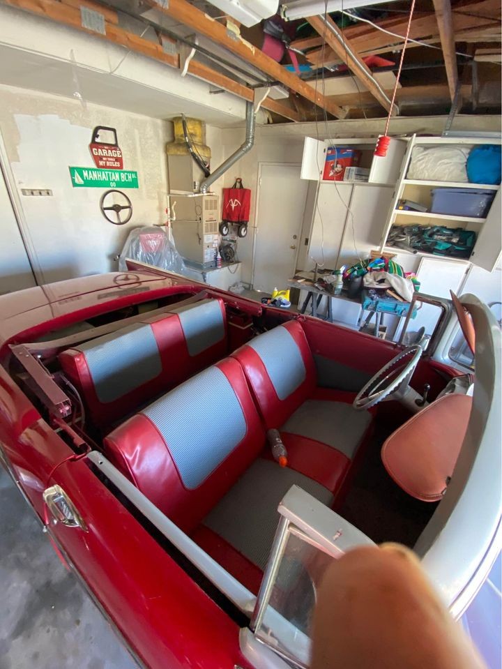 There’s an automatic transmission and nice two-tone upholstery. The paint and chrome look very good, but maybe if corners were cut in one area they were also cut in others. The ad is quite inadequate in convincing any Bel Air lover to want to buy this car. What work needs to be done? Are there plans for a convertible top?