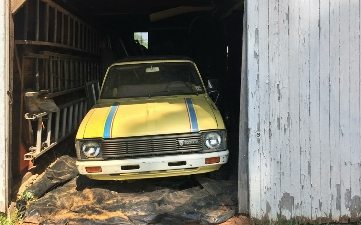 It’s hard to tell that this 1980 Toyota stepside pickup has a secret or two by looking at this opening photo but it has an interesting story. This stormy stepside can be found here on eBay in Charlotte, North Carolina. There are two bids bringing the total up to just over $100 so far, but the reserve isn’t met.