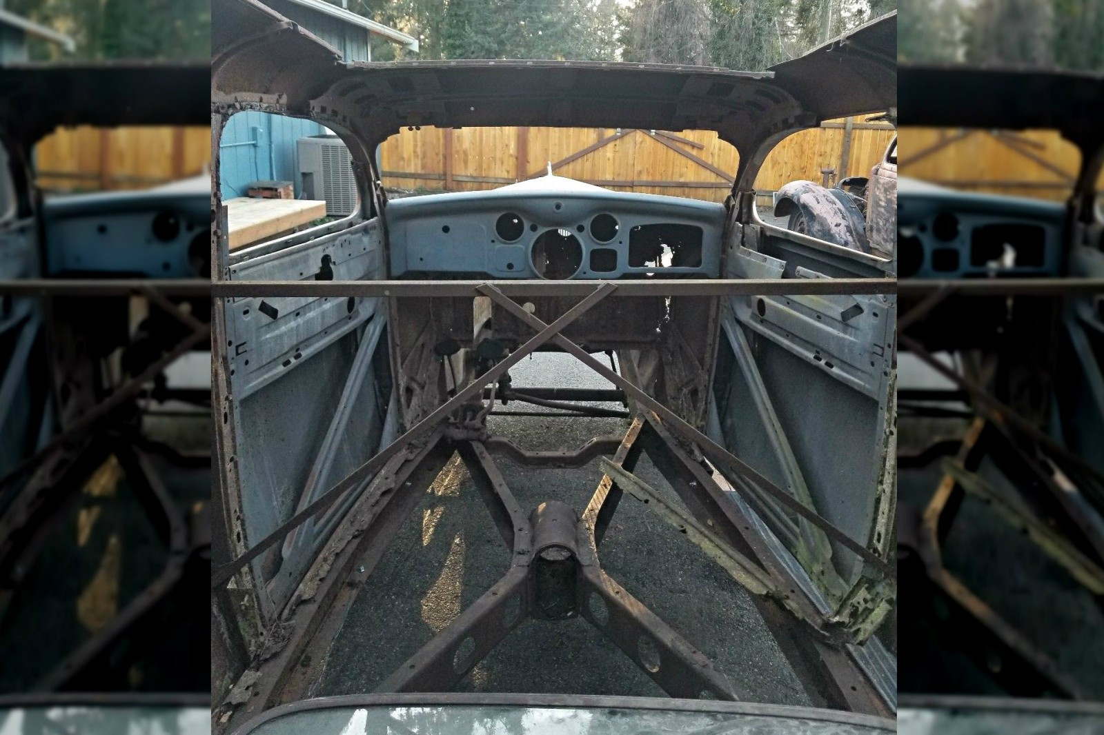 The interior has been braced to keep the body stable for chopping the body, and for holding the body together to rebuild the floors. There is no interior or drive train, but I can easily see where someone would be interested in completing this neat project in their own way.