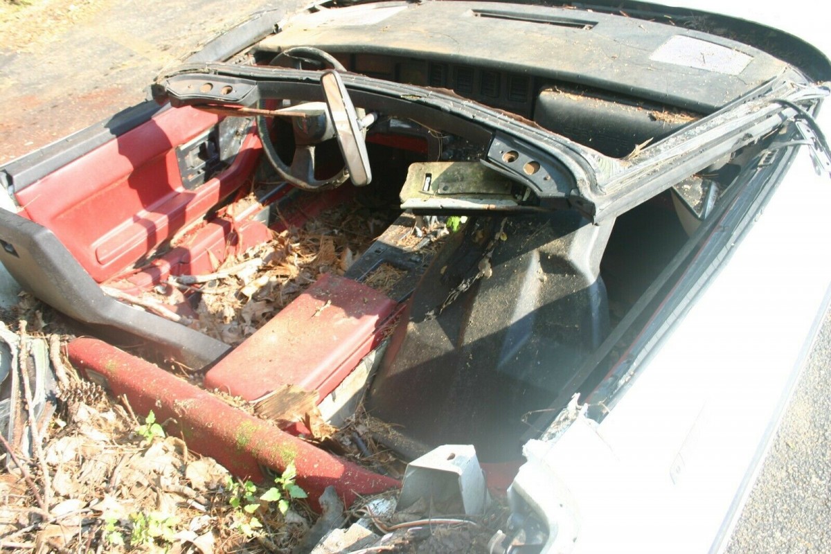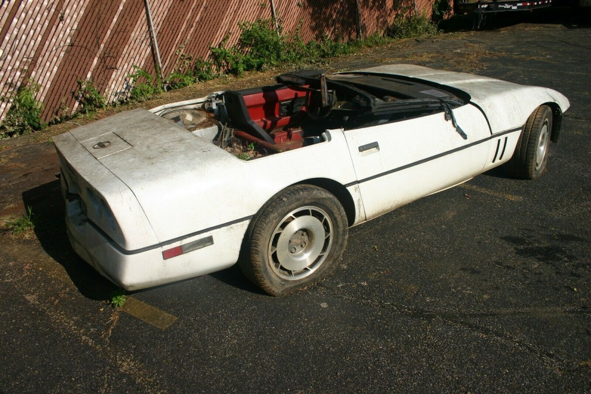It looks like they tried to do the convertible conversion using 1986 factory convertible parts as evidenced by the cut out for the hard boot (tonneau) cover. The 1984โs are not desirable with their cross (back)fire injection with only 205 HP. Good parts car or turn it into a dune buggy like on the Road Kill TV show. Sorry Corvette enthusiasts but I have owned 3. A 1980 (great) a 1985 (ordered new, good) and a slightly used 1986 (better) so it does pain me to see โAmericaโs Sports Carโ in such a sad state…