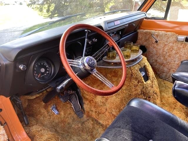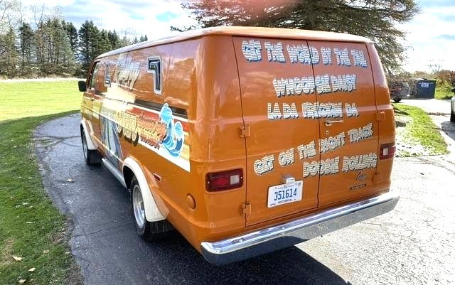 We don’t know when this 1976 Tradesman became a rolling advertisement for Foley and Farley, but we understand it’s logged 84,000 miles over the years. The 360 cubic inch V8 is original and untouched since the 1970s. It has a 4-barrel carburetor, automatic transmission, power accessories, sunroof, and working side exhaust pipes. Everything functions as it should, and we’re told it’s a great running van.
