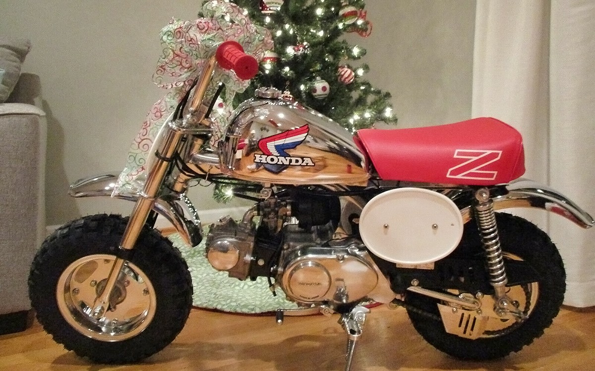 Christmas Special isn’t just the title of this one because it’s a small bike and it’s sitting by a Christmas tree and it’s almost that time of year again. Christmas Special is what the 1986 Honda Z50RD was known as – although some folks referred to it as the Chrome Edition, for obvious reasons. This rare and highly-collectible Honda 50 can be found here on eBay in Ararat, North Carolina with a current bid price of $7,100 and the reserve isn’t met yet! Let’s check out this little chrome elf.