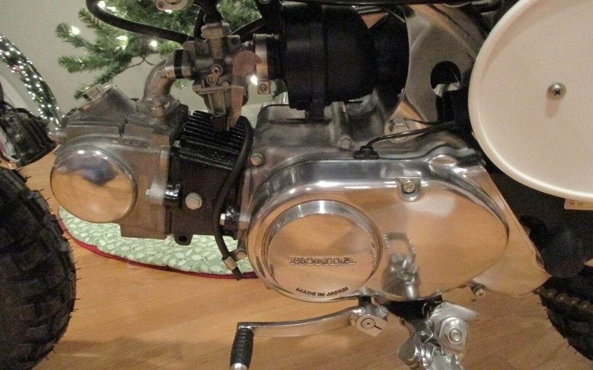 The seller says that the gas tank is an NOS piece that they paid $1,500 for! The seat is also NOS, as well as the lower fork assemblies and tires. NOS is NOS so it’s great that the seller was able to keep this bike with all factory parts. The engine is Honda’s 49 cc single with a top speed of just under 30 mph and the seller says that it starts in two or three kicks and runs perfectly. Have any of you seen a “Christmas Special” Honda Z50RD?