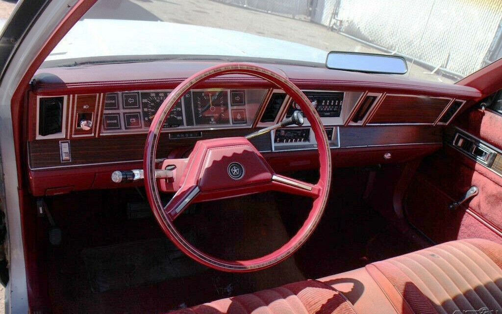 This car is being sold after being donated and it isn’t all rosy, even though it has a red interior… Which looks great, by the way, other than being sun-faded and needing a bit of love on a couple of areas like a ripped seat back and a crack on the dash.