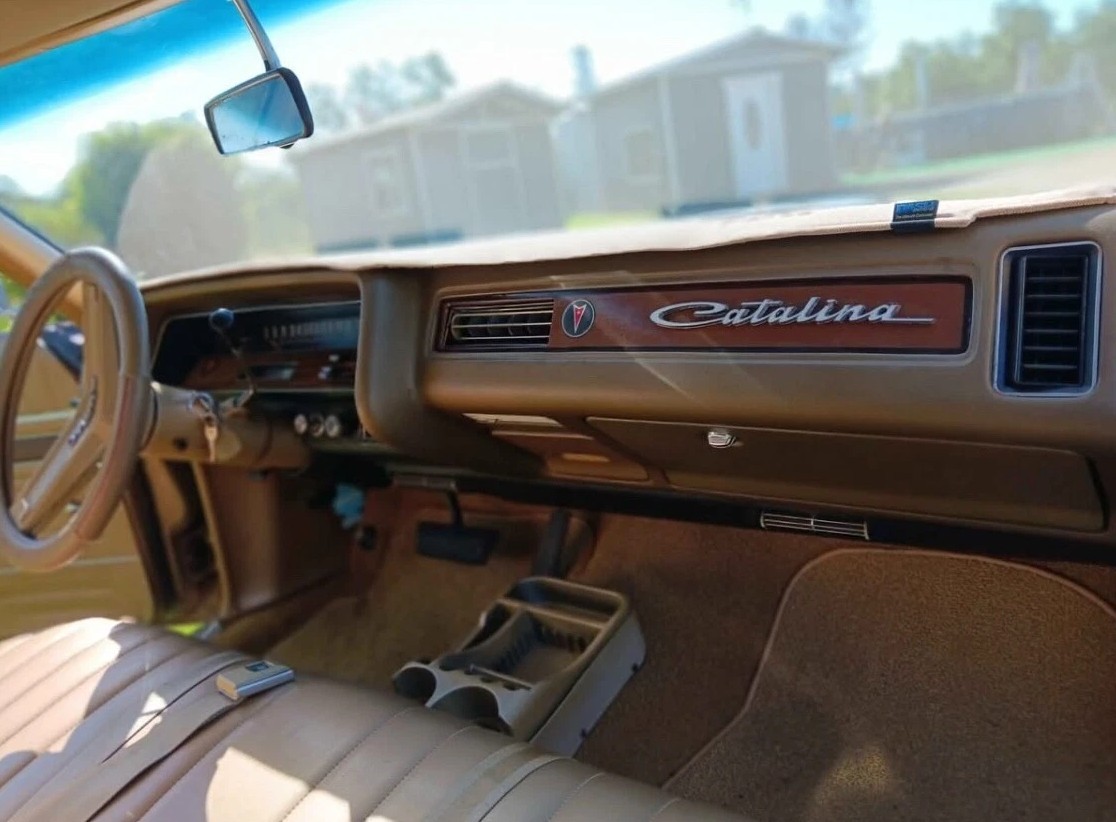 This does look like one clean Catalina. Is it me? Or does the steering wheel look like its out of a 1970 Chevy with some glued on lettering? The dash too, with the large Catalina lettering on it. I don’t think Grammy did that. I have to admit. There was a huge change from the ( my favorite) 1965 ’66 Full size Pontiacs to these in ’70. I lean towards the Olds and Buick full size models from ’70 over the Pontiac. But that being said, of bought right this could be a really nice weekend cruiser.