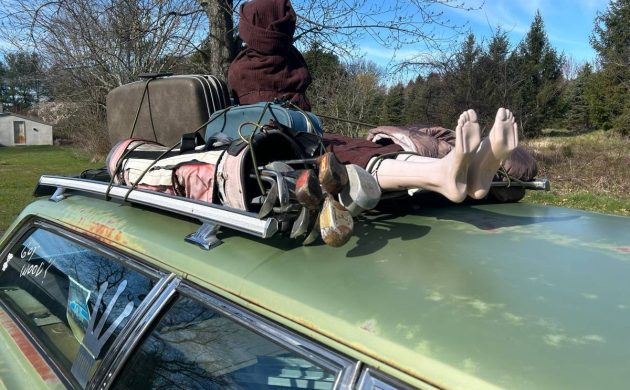 For example, fake wood siding was applied similarly to the WQFT, but it was only grocery store stick-on shelf paper (the seller used a lot of it). A hood ornament was added, but a hole had to be drilled to accommodate it, and a fake gas cap was applied to the right front fender. On the roof resides Griswold luggage and what appears to be the remnants of Aunt Edna after she passed away during the trip out west. The front grille, which looks a lot like one from a 1960 Edsel, has been replaced to give the illusion of a series of headlights. We’re told all of this is reversible if you want a stock ’69 wagon with 132,000 miles.