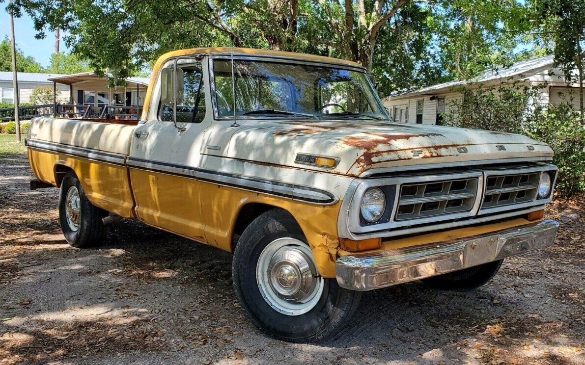 “Camper Special” ignites the imagination among camping fans and gear-heads alike… for different reasons. Outdoor lovers prize the camper special’s ability to carry a slide-in camper unit or pull a travel trailer, and the ..Special‘s heavier suspension, brakes, and cooling. Motorheads immediately think “big engine” and “high-speed gears,” a perfect combination for acceleration and the recreational conversion of rubber tires into smoke. This 1971 Ford F250 Camper Special purportedly has a 390 V8, and the seller states that everything except the air conditioning and “a couple gauges” works “as it should.” The never-restored Sebring, Florida runner can be yours with a click of Buy It Now here on eBay, or tempt the seller with Make Offer on the RWD classic.