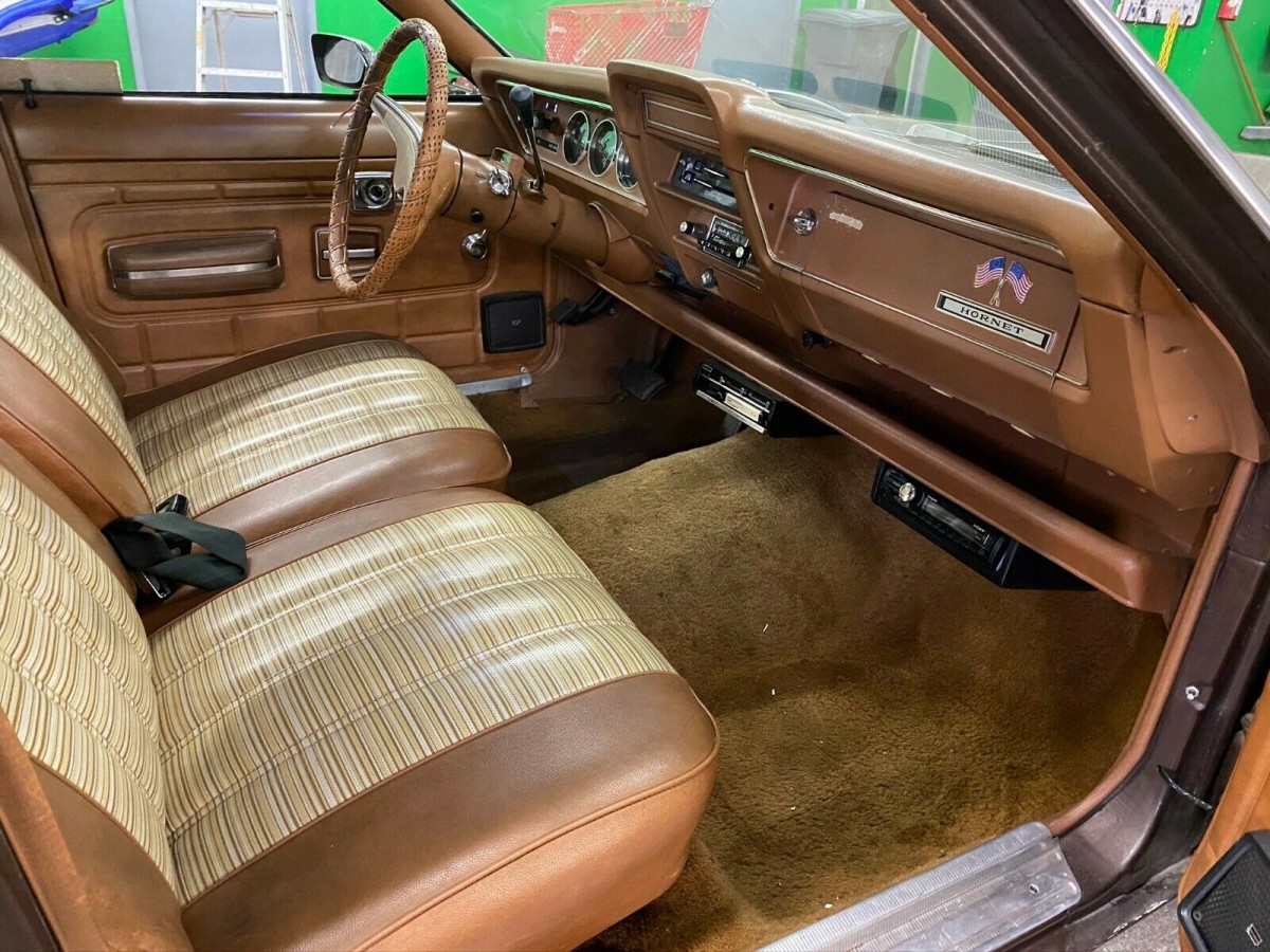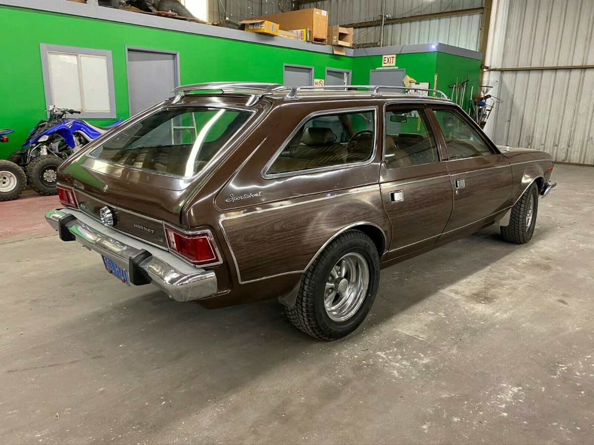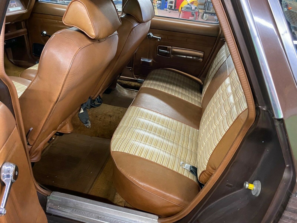 The Sportabout is finished in Copper Tan Poly, and it generally presents very well. The paint on the hood and the tops of the fenders is beginning to show some deterioration, so a partial repaint is probably in this wagon’s future if it is to present at its very best. The rest of the paint appears to be quite nice, while the faux woodgrain is also in good order. The panels are about as straight as you could hope to find on a vehicle of this age, while there is no rust to be found anywhere. The condition of the trim and chrome is quite good for a driver-quality vehicle, although I think that if the bumpers were sent off to the plater, that would really lift the overall level of presentation. All of the glass appears to be nice, with no signs of any significant chips, scratches, or flaws. The wheels aren’t original, but I think that they really suit the Hornet. One bonus is the fact that the spare is a match to these wheels, which means that replacing a flat tire won’t leave the Sportabout looking odd. An extra bonus is the fact that those wheels wear a brand new set of tires.